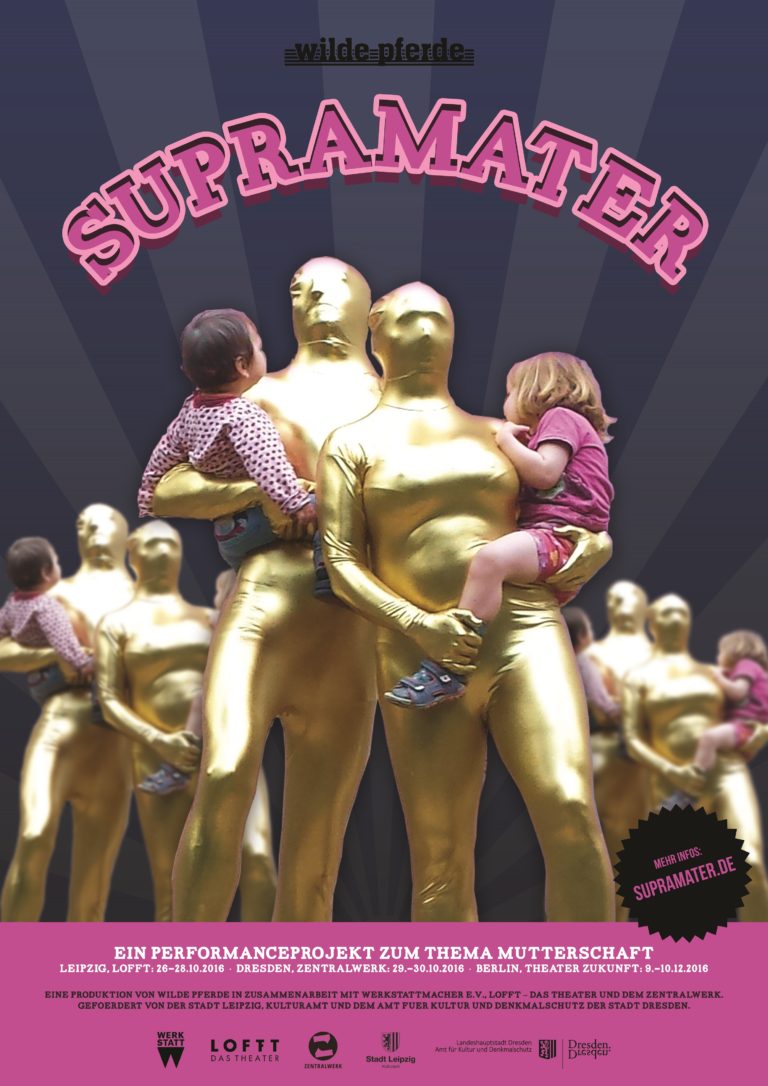 Das Projekt SUPRAMATER ist Recherche-Projekt, lecture performance und Internetplattform. wilde pferde sehen in künstlerischen Praktiken das Potential, eindeutige Wertungen zu umgehen, Ambivalenzen und Widersprüche bestehen zu lassen und naturalisierte Annahmen über Mutterschaft und Familie zu dekonstruieren. Das Projekt erforscht die vielfältigen, eigensinnigen Arrangements und (Gleichberechtigungs-) Praxen von Frauen und Männern, die mit Entweder-Oder (Vollzeitmutter-Karrierefrau) Leitbildern der Gesellschaft brechen.
